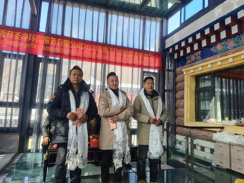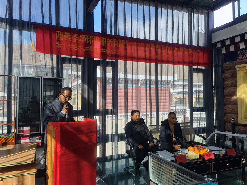 2022年2月25日11:00分,西藏圣凈環(huán)保服務(wù)有限公司在總公司二樓辦公室召開(kāi)2021年度總結(jié)暨表彰大會(huì)。董事長(zhǎng)達(dá)瓦、股東拉巴次仁、副總經(jīng)理次仁、副總經(jīng)理尼瑪次仁、綜合辦公室主任旦真多吉及各地分公司負(fù)責(zé)人、各部門負(fù)責(zé)人、優(yōu)秀員工代表和總公司全體員工出席會(huì)議。