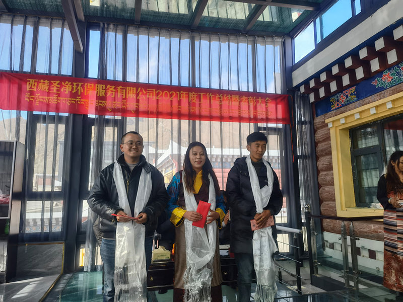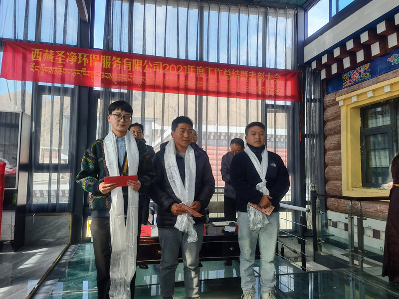 會(huì)議由副總經(jīng)理尼瑪次仁主持,共有八項(xiàng)議程。首先由公司副總經(jīng)理尼瑪次仁做2021年度工作報(bào)告,財(cái)務(wù)部主管強(qiáng)巴玉珍做2021年度財(cái)務(wù)決算及2022年度財(cái)務(wù)預(yù)算報(bào)告,各部門負(fù)責(zé)人依次做2021年度部門工作報(bào)告。接著,副總經(jīng)理尼瑪次仁宣讀《西藏圣凈環(huán)保服務(wù)有限公司2021年度優(yōu)秀團(tuán)體、勇于擔(dān)當(dāng)獎(jiǎng)、優(yōu)秀管理員、先進(jìn)個(gè)人、優(yōu)秀員工的表彰決定》,由主席臺(tái)領(lǐng)導(dǎo)為獲獎(jiǎng)部門、員工頒發(fā)獎(jiǎng)狀、獎(jiǎng)金及年終績(jī)效獎(jiǎng),優(yōu)秀管理員代表朗加做經(jīng)驗(yàn)交流。隨后,副總經(jīng)理次仁做2021年度商務(wù)工作報(bào)告。會(huì)議最后,達(dá)瓦董事長(zhǎng)回顧2021年各項(xiàng)工作,也對(duì)2022年工作進(jìn)行部署和期許,同時(shí)對(duì)各位員工的辛勤付出表示由衷的感謝,提前預(yù)祝大家藏歷水虎年快樂(lè)、闔家幸福、身體健康!